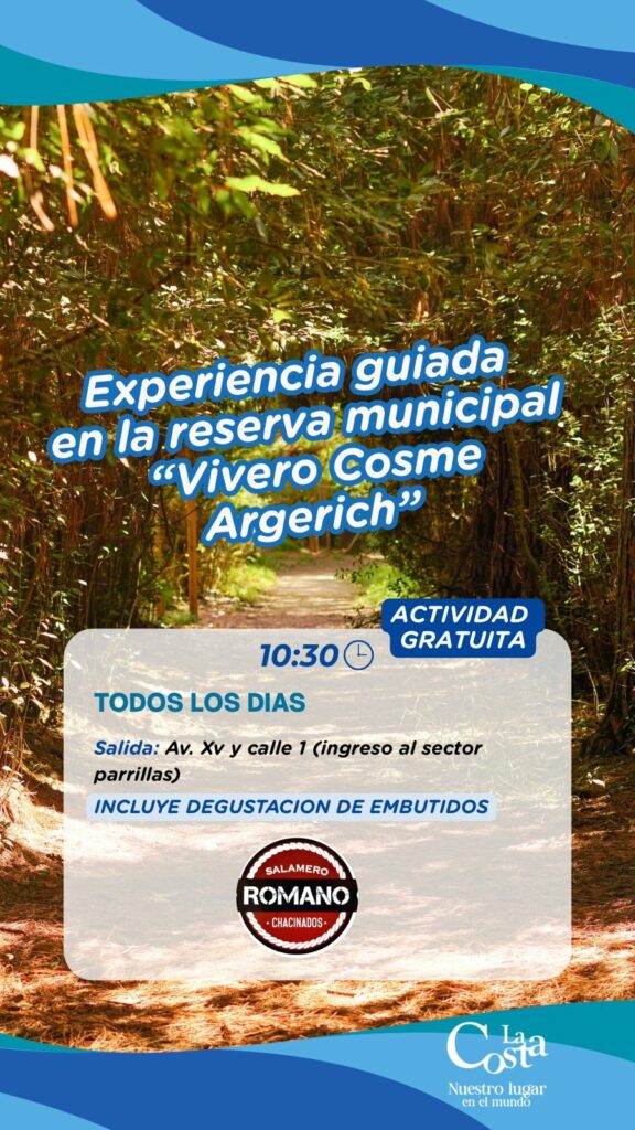 Sumergite en la naturaleza con una visita guiada por la Reserva Municipal Vivero Cosme Argerich. Explorá sus senderos entre bosques de pinos y eucaliptos, descubrí su biodiversidad y conocé la historia de este espacio único en La Costa.